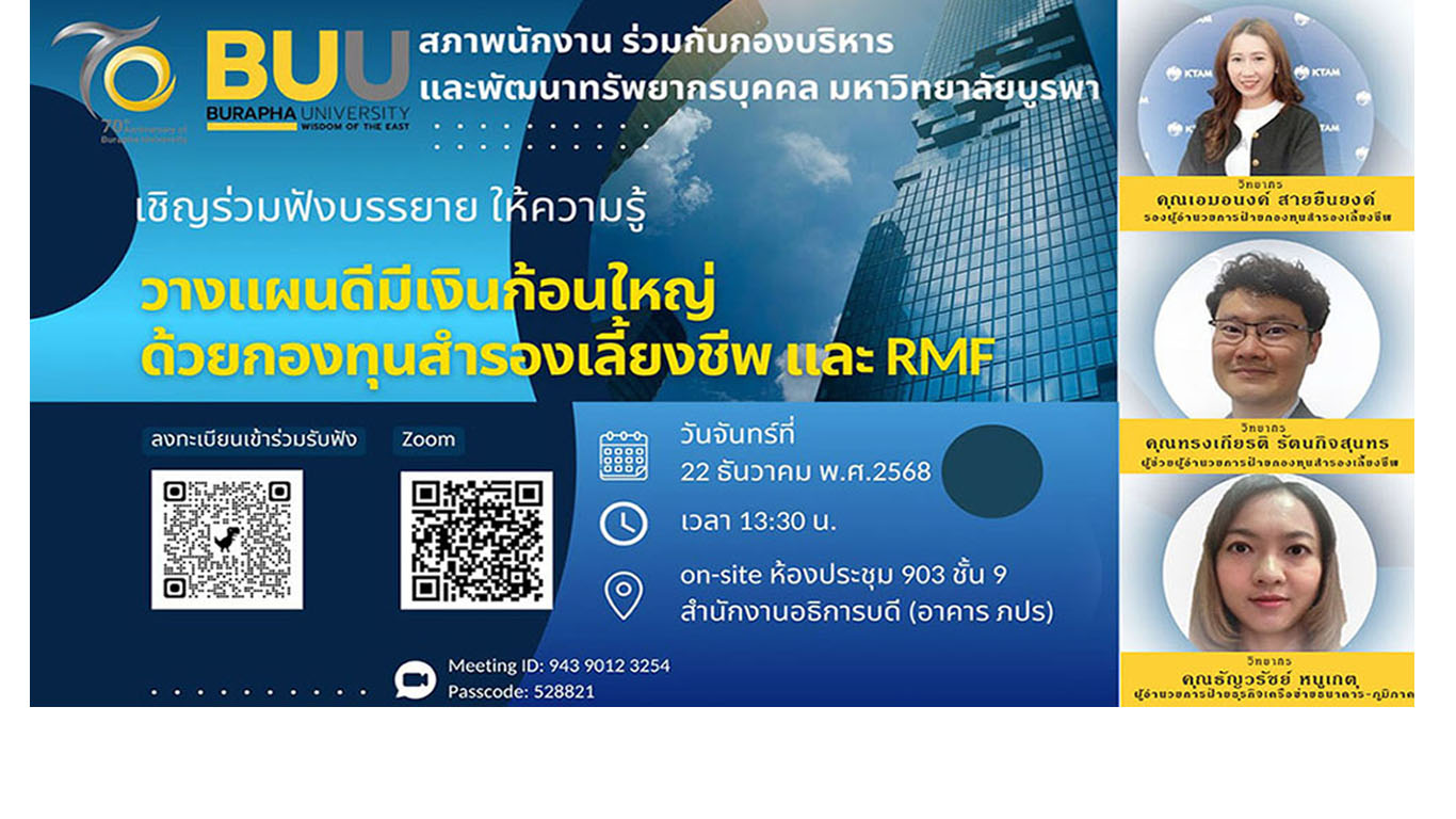 ขอเชิญฟังบรรยายให้ความรู้โครงการวางแผนดีมีเงินก้อนใหญ่ด้วยกองทุนสำรองเลี้ยงชีพและRMF