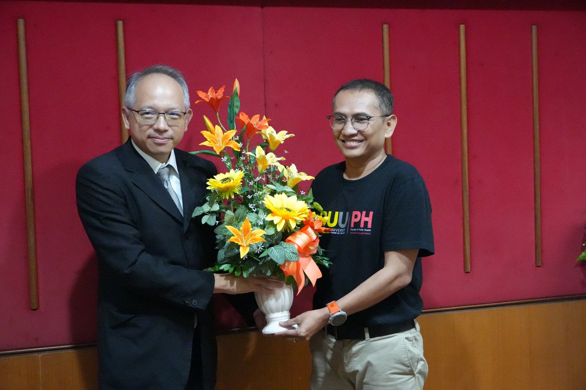 และได้ร่วมแสดงความยินดีกับรองศาสตราจารย์ ดร.โกวิท สุวรรณหงส์ เนื่องโอกาสดำรงตำแหน่ง คณบดีคณะสาธารณสุขศาสตร์