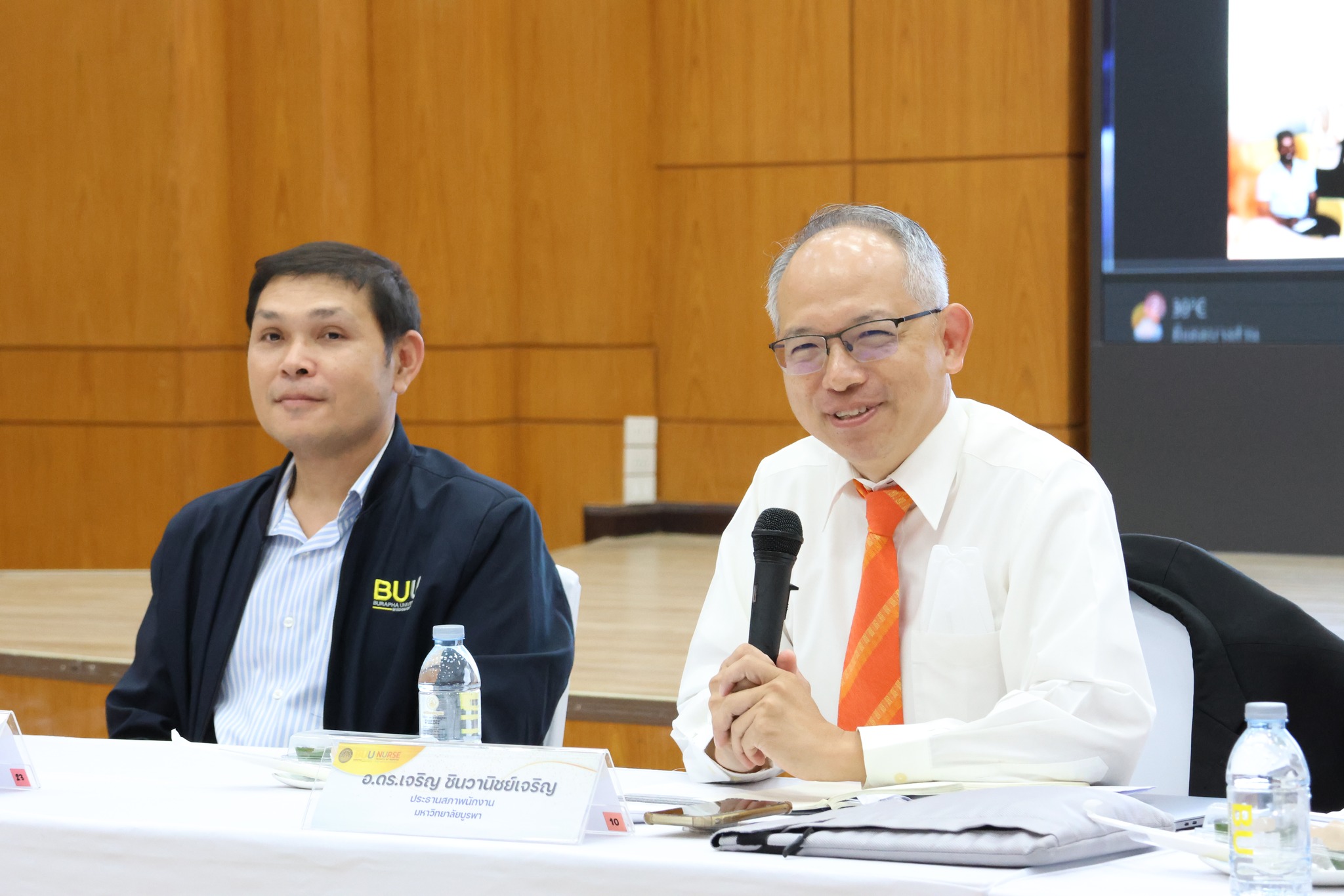เมื่อวันที่ 11 มิถุนายน พ.ศ. 2568 ณ ห้องประชุมแคแสด ชั้น 5 อาคารเฉลิมพระเกียรติฯ คณะพยาบาลศาสตร์ ดร.เจริญ ชินวานิชย์เจริญ ประธานสภาพนักงานมหาวิทยาลัยบูรพา พร้อมด้วยคณะกรรมการสภาพนักงาน โดยได้เรับเกียรติ รองศาสตราจารย์ ดร.พรชัย จูลเมตต์ คณบดีคณะพยาบาลศาสตร์ พร้อมด้วยทีมผู้บริหาร คณาจารย์ และบุคลากรสายสนับสนุน ต้อนรับ และเข้าร่วมแลกเปลี่ยนความคิดเห็น ซึ่งถือเป็นโอกาสอันดีในการเสริมสร้างความเข้าใจอันดีระหว่างสภาพนักงานกับประชาคมส่วนงาน